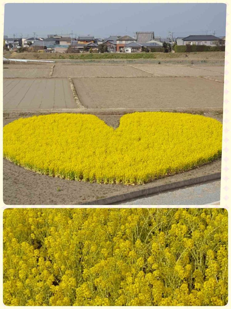 週末、雲出川の堤防から、田んぼの中にハートの菜の花畑が作られてたので、パチリ📷と(^o^)v。