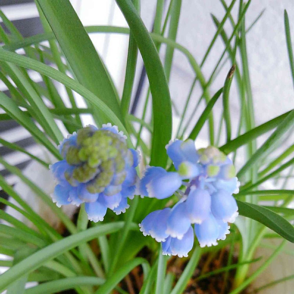 最初咲いたのは 伸びてますが 真ん中から赤ちゃんムスカリが生まれてたよ💙