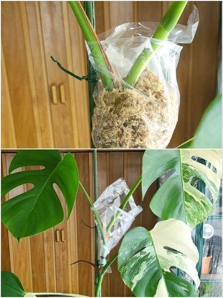 発根したらカットします。本体上部から新芽が出たら、また水苔を巻き発根させてトップカットします。