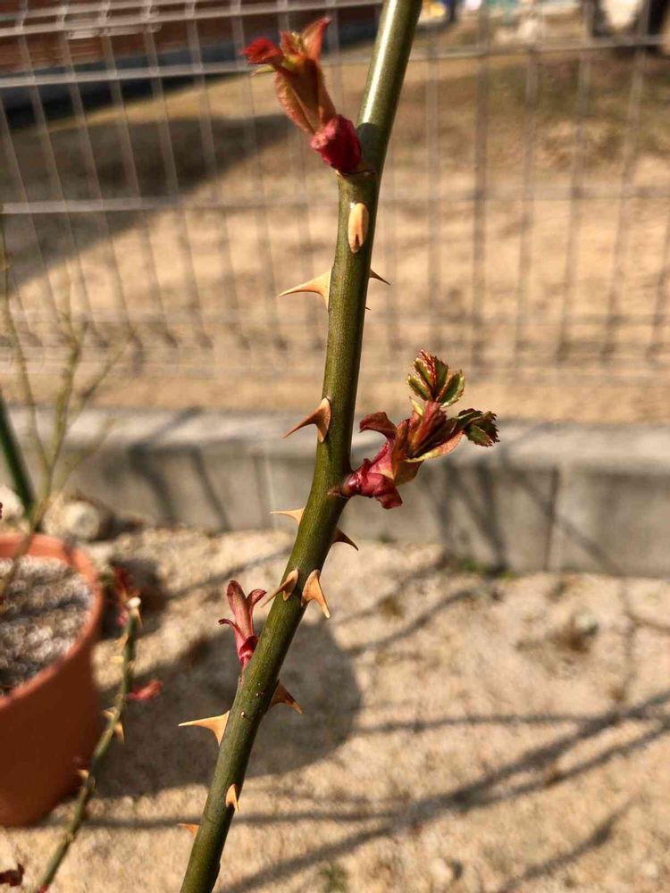 我が家の薔薇も赤い芽がぷっくりしてきましたが