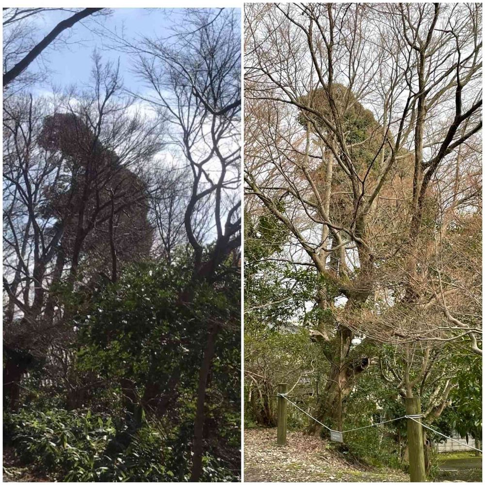 全くふつうの木だそうで、この角度だけが枝振りで見えるらしいです。