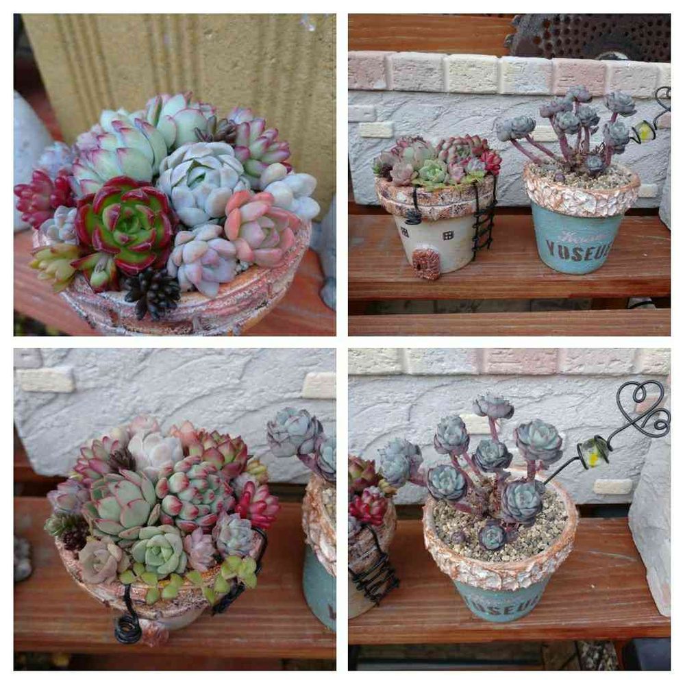 さん。鉢のお陰で可愛く見えます😁😁寄植えこの状態を維持出来ないのが残念😅😅
