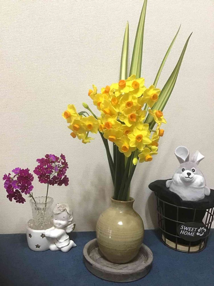 黄色の 房咲き水仙 🌼 が いっぱい 咲いているので、少し 摘みました❣️