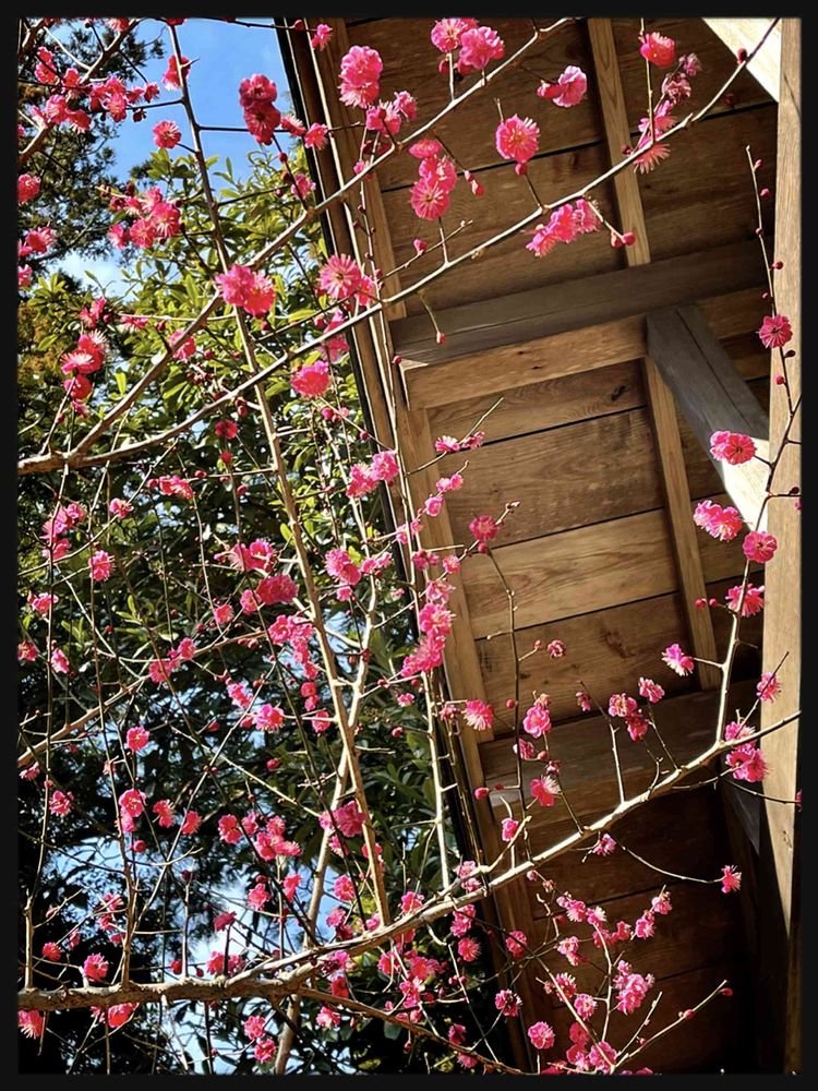 神社に紅梅が咲いているのを初めて見ました