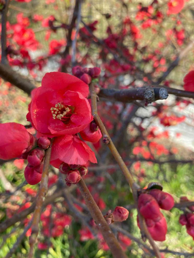 ボケ(木瓜)は原産地の中国では「放春花」という名前で表記され、『どの花よりも先に春の香りを放っている花』という意味があるそうです。
