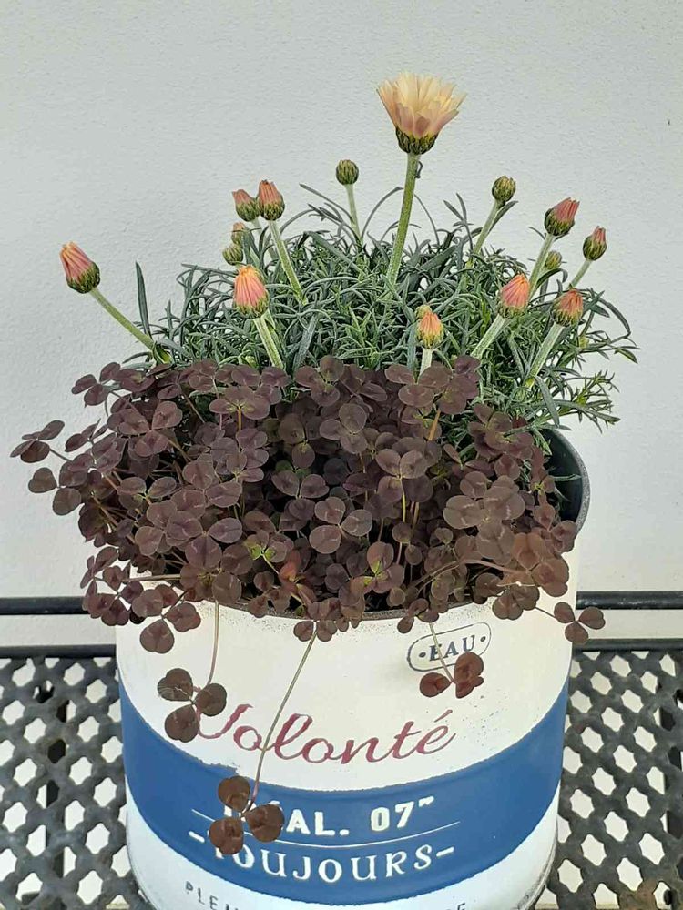 ブリキ鉢にクローバー入れて、こんな風に寄せ植えするのも素敵ですね☺️💕