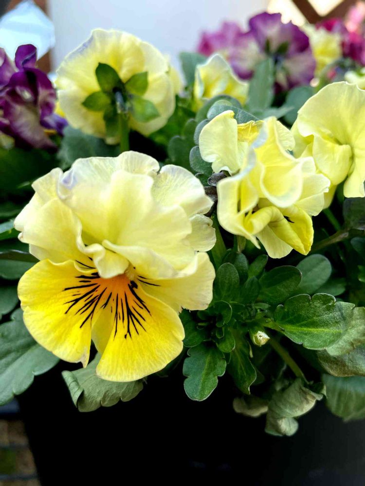 バスケット型プラ鉢に寄せ植え売りしてたビオラ
