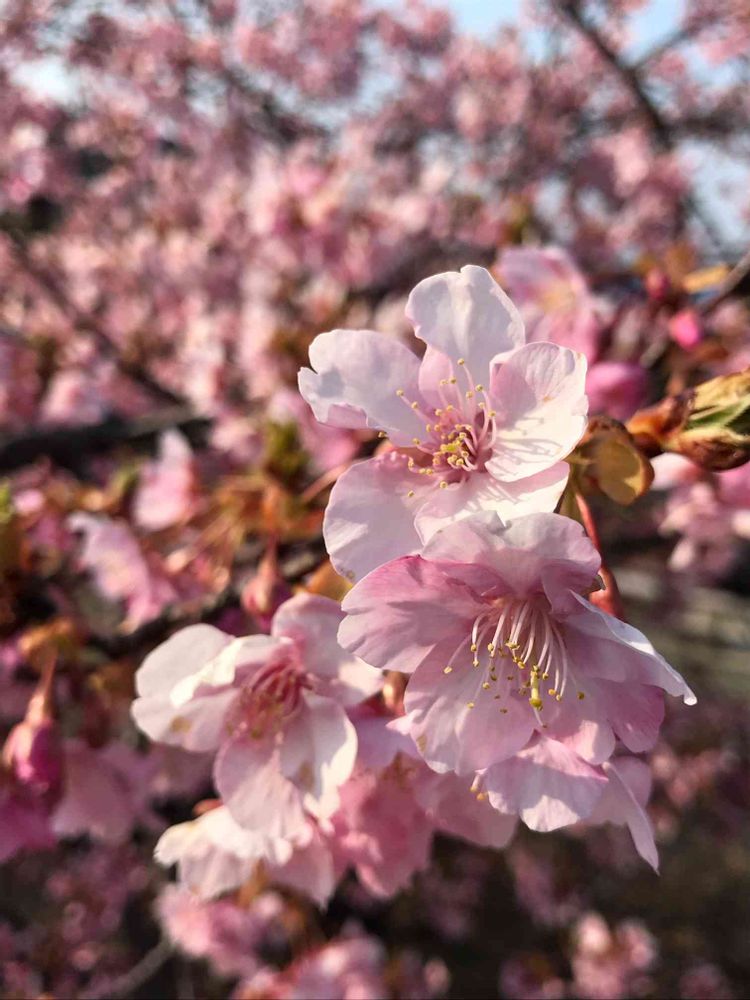 淡いピンク色のソメイヨシノより少し濃いピンク色が、とても眩しかったです✨✨✨