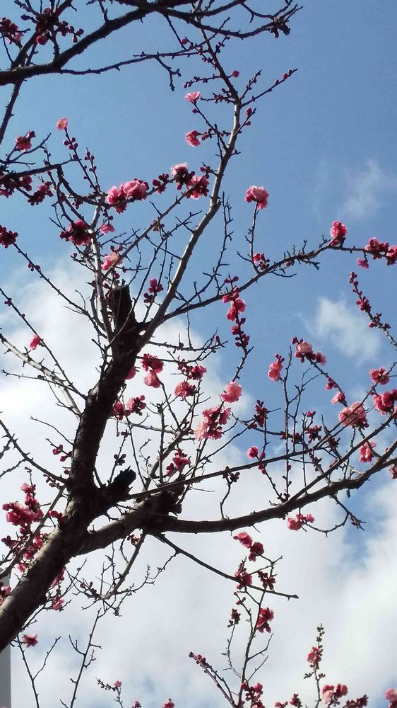 紅い「梅」のお花も青天に映えます。💙🌸🌸🌸🤗😊😄🌞✌️