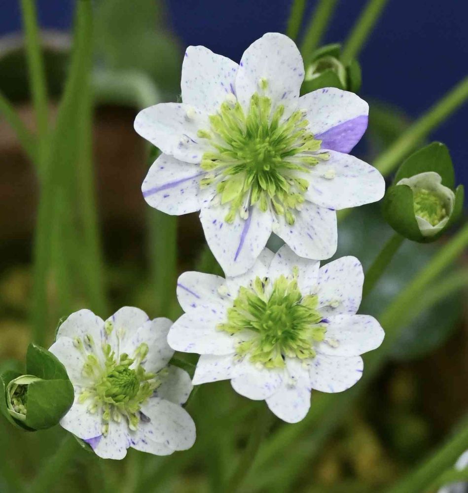 絞り咲きの桔梗のような《雪割草》🤍💚💜