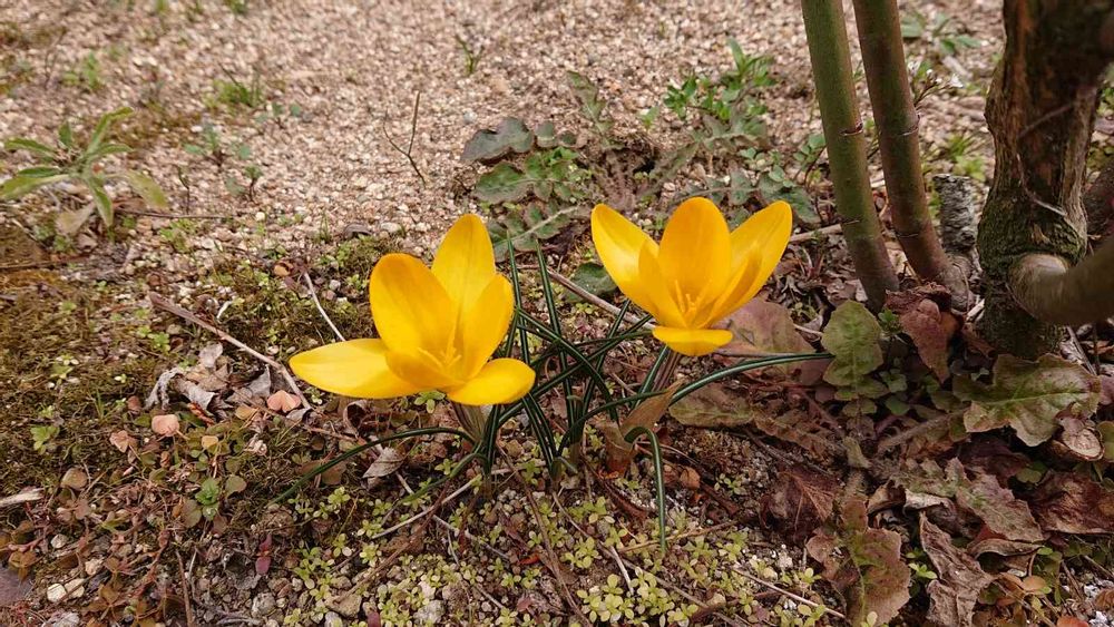🌺バラの株元にクロッカスの花が咲いています。春先の僅かな時間だけ起きて又眠りにつくのかな?何か凄い生活してますね。👍