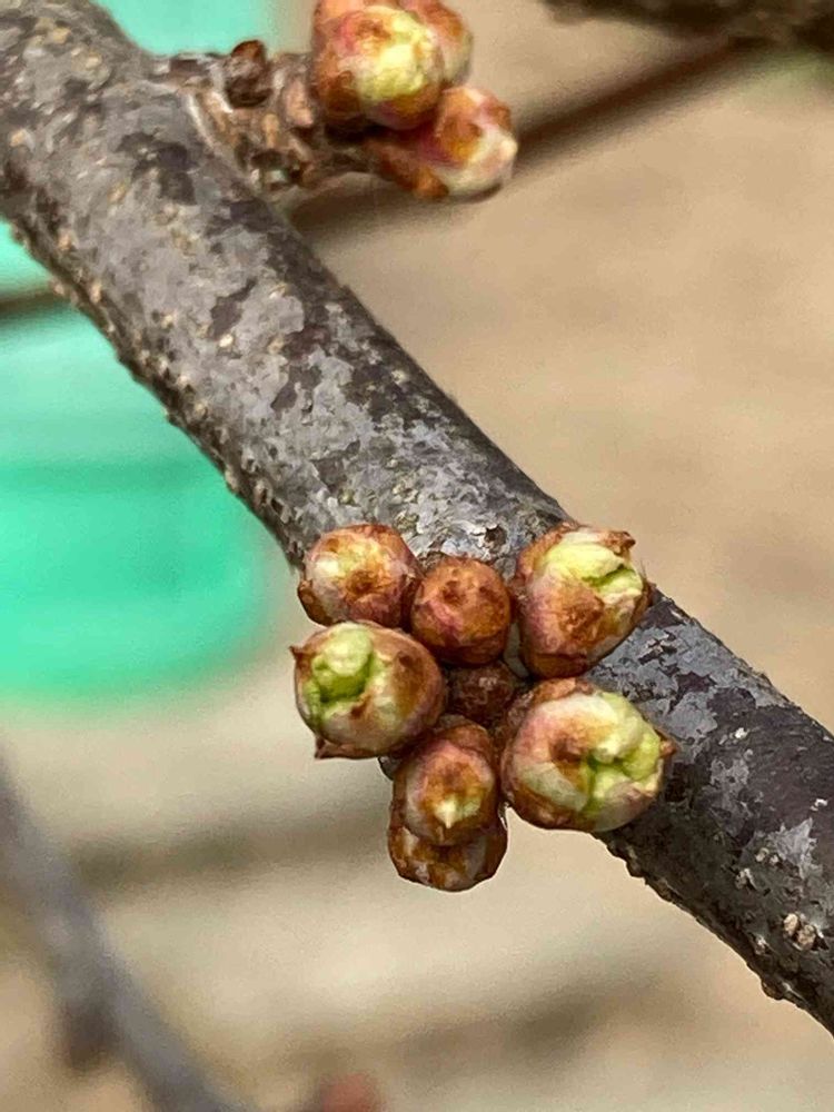 我が家の裏にあるソルダムの蕾が、ずいぶんと膨らんできましたね