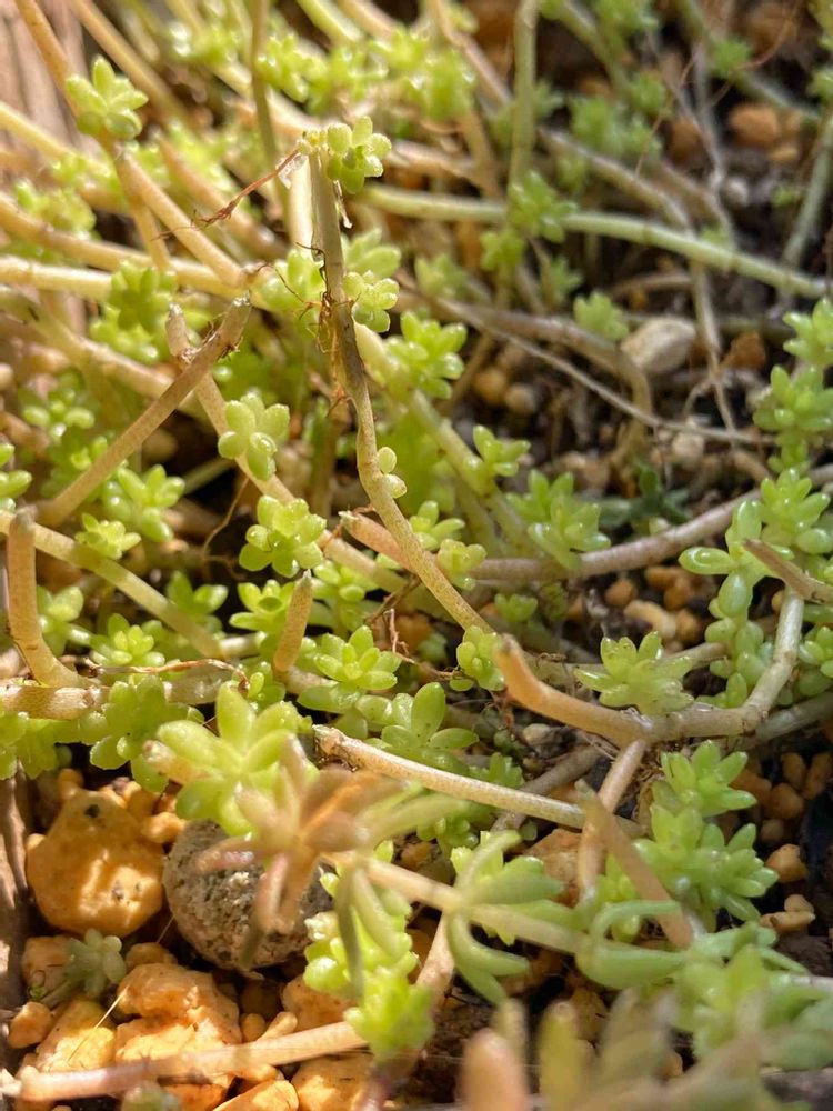 増えすぎ&絡み合ってモッサモサ状態で、見栄えもよろしくなかった黄万年草鉢を、ようやく大掃除した✂️