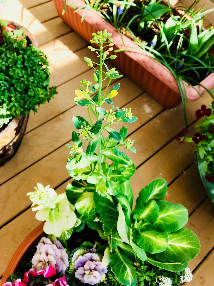 春だねぇ〜ぐんぐん伸びてる☝🏻✨✨うちの葉牡丹の花も咲いたよ〜〜💕