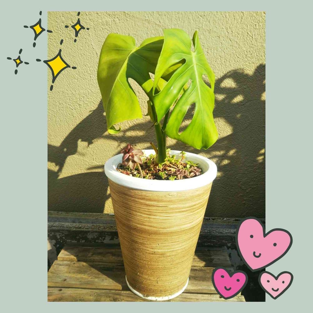 玄関でなんとか冬を乗り越えたモンステラさん。暖かくなったので、屋上で日向ぼっこです。頑張ったね😊