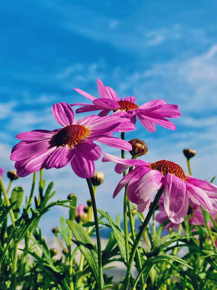 とっても綺麗な青空にピンクのマーガレット🌼