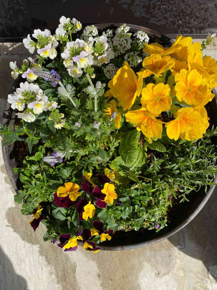 空いたところにご近所でゲットしたビオラ(50円!)と、園芸店でアンティークビオラなるものを発見(切り戻しちゃったから100円でいいよって言ってくれました🥺)して植えてみました。