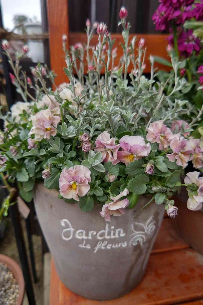 柔らかな色合いで、春らしくて優しい雰囲気の寄せ植えですね🥰