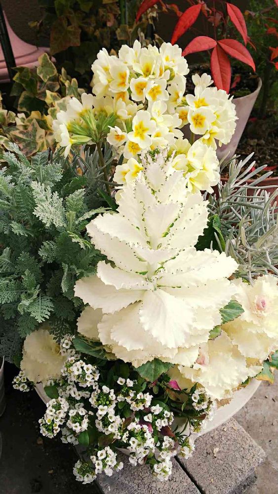 初めて葉牡丹を育てたからびっくり∑( ◦д⊙)‼ 最先端のプリムラさん、せめて咲いたら名前欲しいよね〜ꉂꉂ(ˊᗜˋ*)𐤔𐤔
