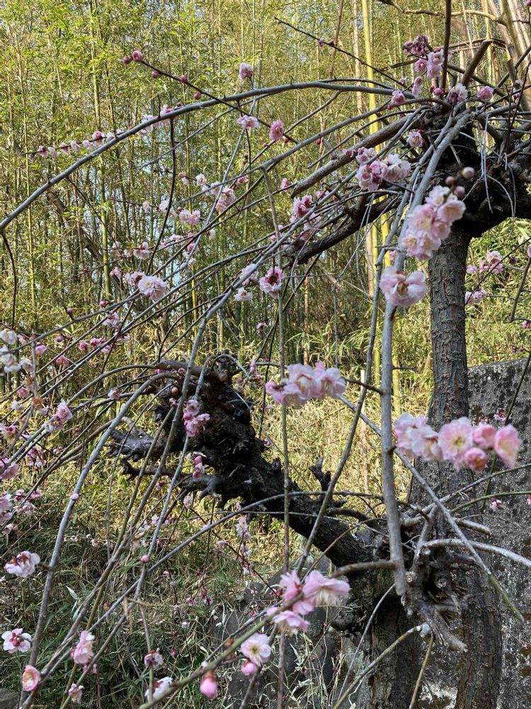 竹林の斜面にピンク🌸の梅、これからの季節筍掘りも良いですよね💕