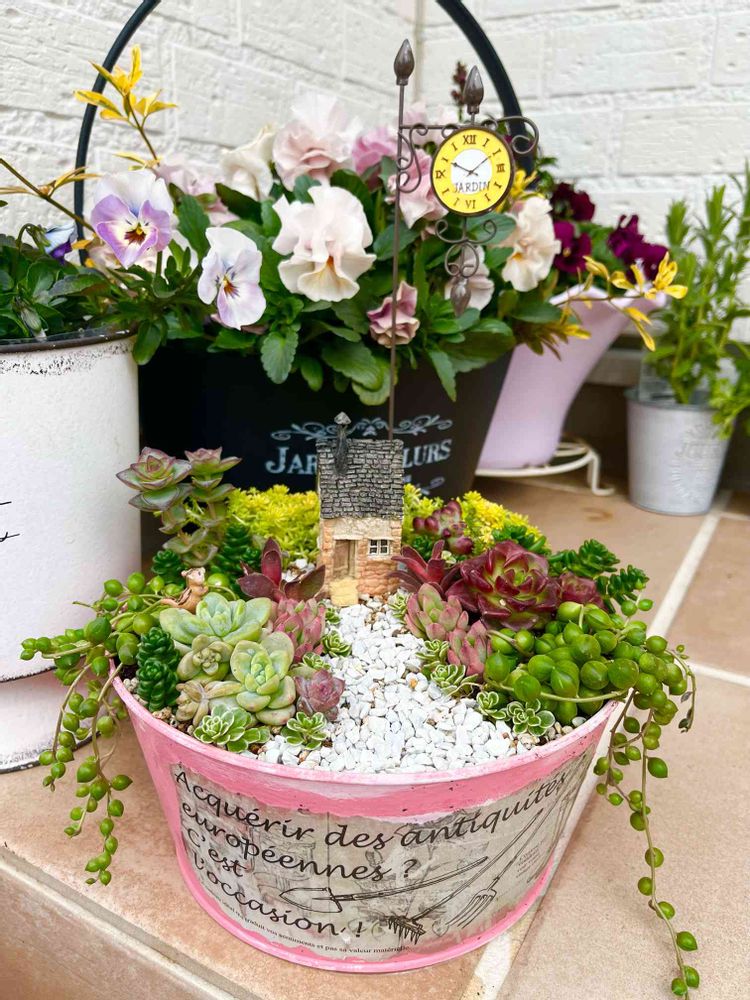 昨夜作った寄せ植え箱庭風