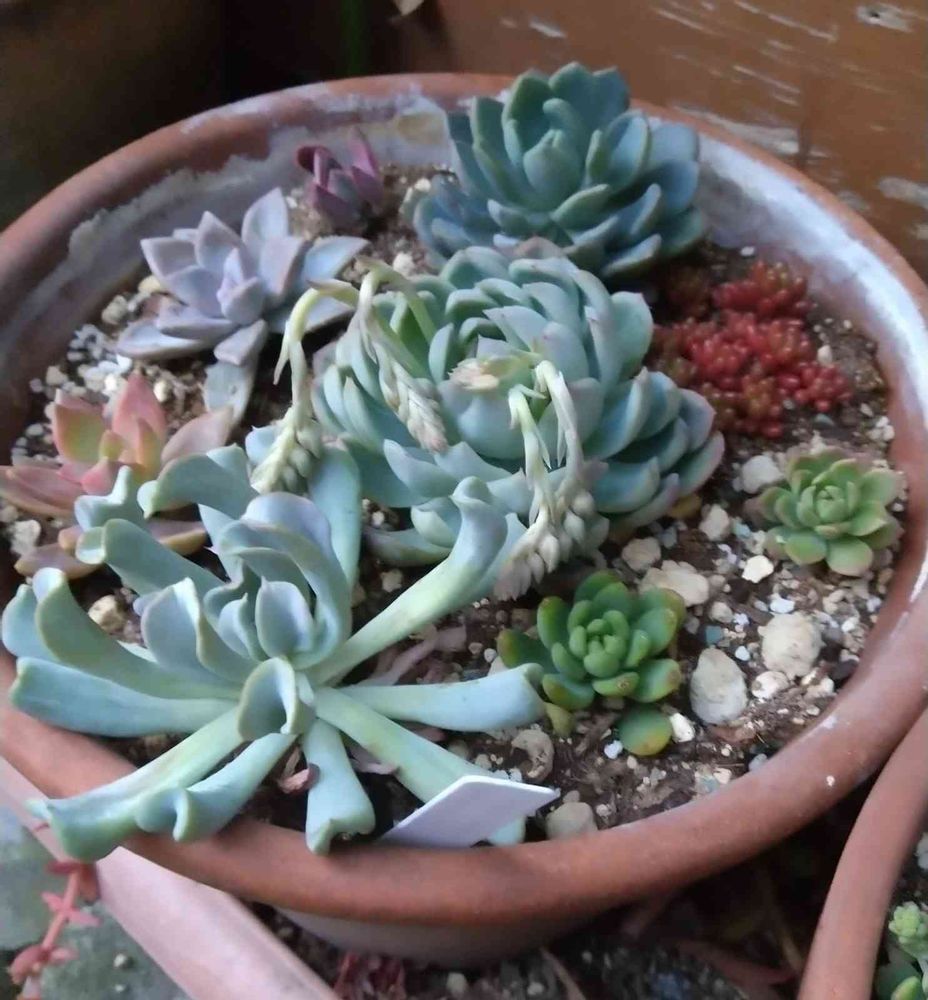 真ん中のエケベリアさん、花芽がうにょうにょー😁🌺🌺