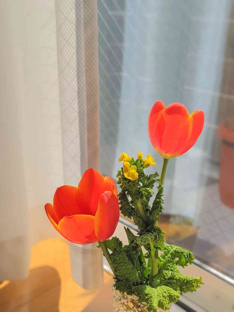 チューリップと菜の花の組み合わせ、もう春色全開ですね〜🌷✨