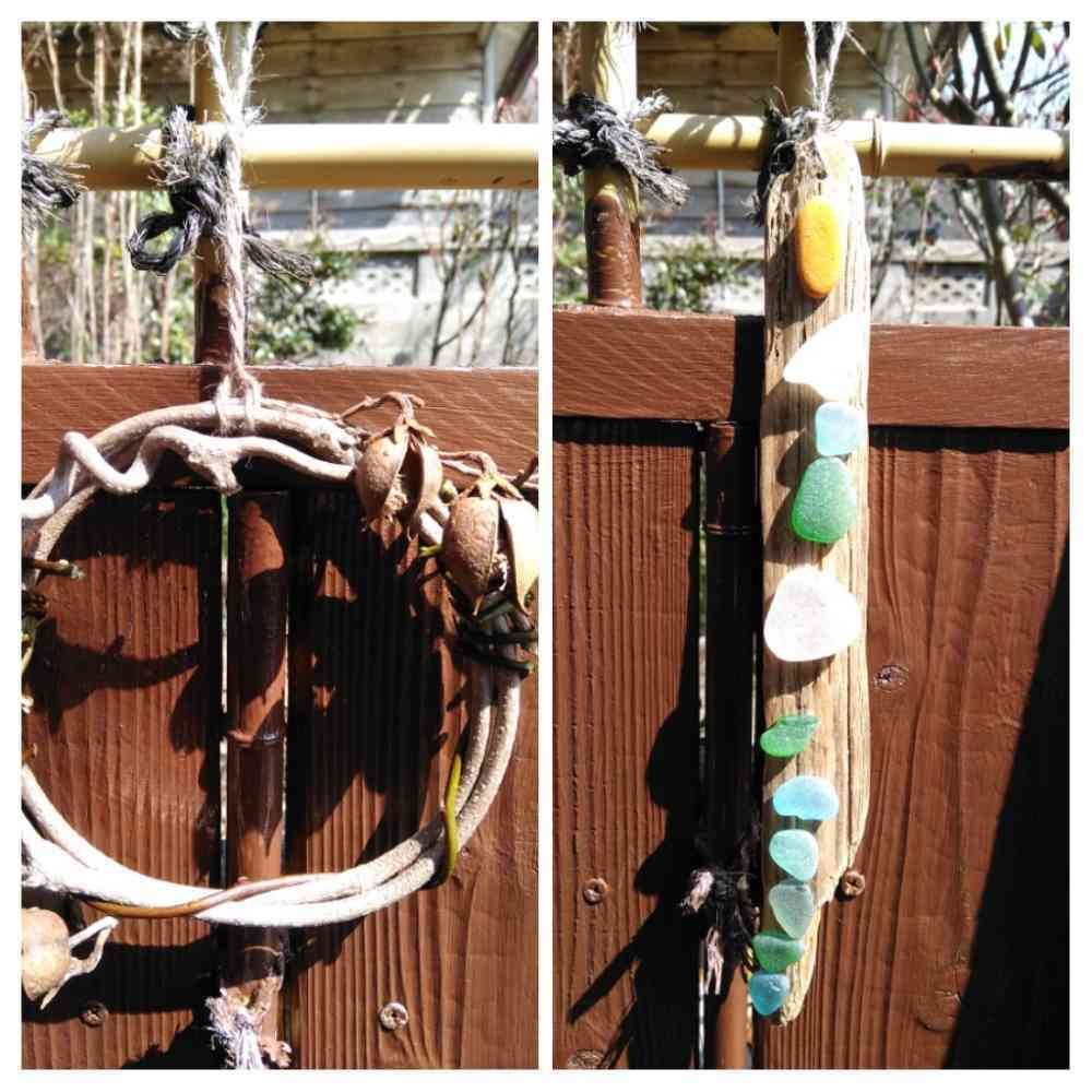 1年生の孫ちゃん作、シーグラスのオブジェとリースです😆👌💕