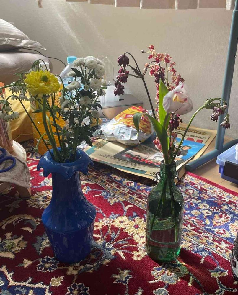 好きなバンドの方が投稿された写真ですが、この小さくシュンってしているお花の名前が知りたいです。右の赤っぽいお花と左の白っぽいお花は同じ種類なのでしょうか?教えていただけると嬉しいです🥺