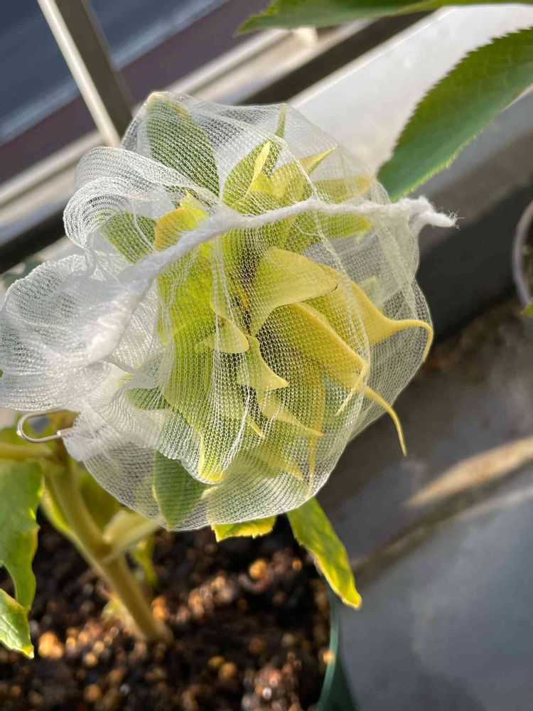 クリローのタネが出来てきてると思って排水溝用のストッキングタイプのネットをかけました。