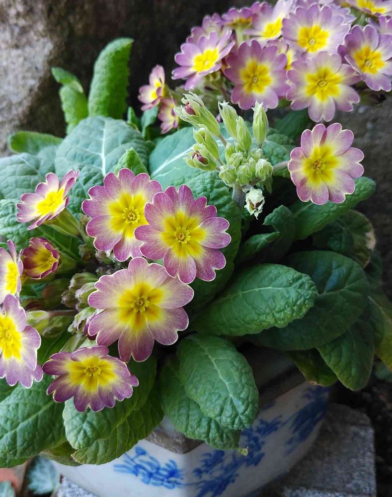 素敵な色合いの、花さんですね、プリムラのかぶ、がふえてつぎつぎに、花咲かせて素晴らしい、風景に。
