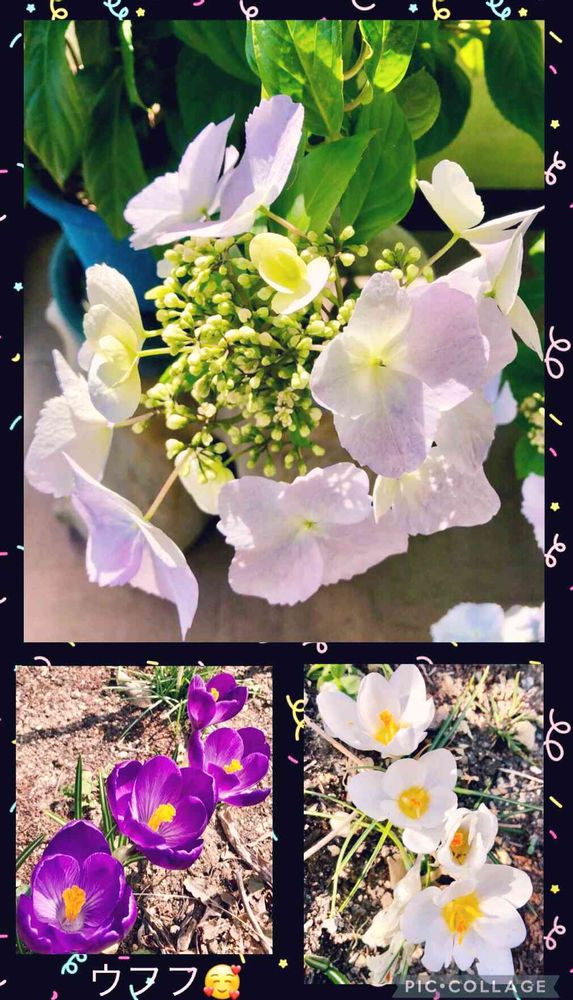 (母No.135)母はやっと散歩解禁🚶♀️💦高齢なので😅歩行にも気をつけながら春を感じて欲しいです❣️実家のクロッカスがいっぱい咲いたそうです💕紫陽花はいつも行くラーメン屋さんのだそう😱💕寒いのにもぉ咲いてるんですね〜(#^.^#)幸せ気分お裾分けありがとう〜❣️みなさんにも‥‥♫♫