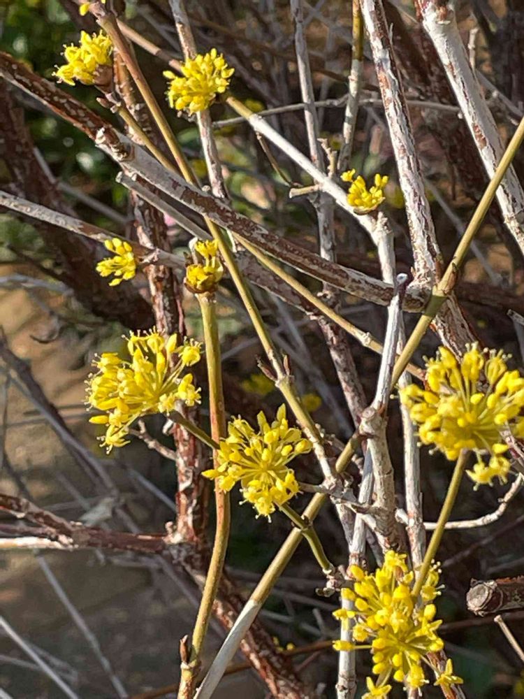 昨日より今日は一段と蕾が大きくなってきました。マンサクの色が少し褪せてきたと思ったらサンシュユの出番が来ました。蝋梅、マンサク、山茱萸と黄色三兄弟が咲きました^_^