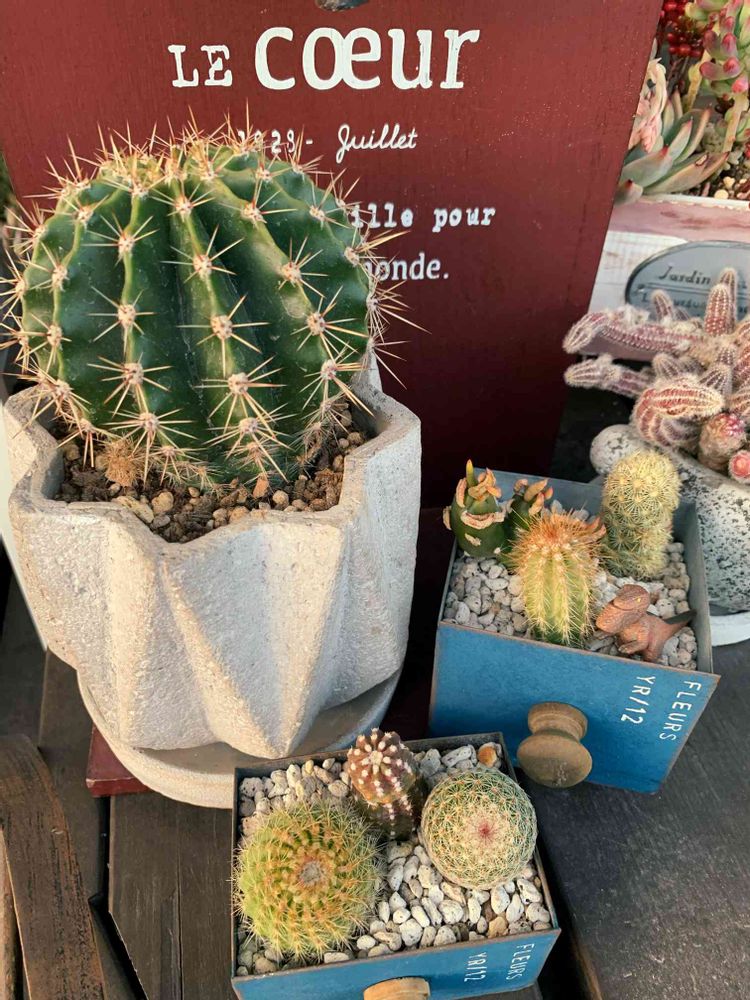 取手のついた植木鉢がサボテンちゃんとバッチリ可愛いですねぇ😍