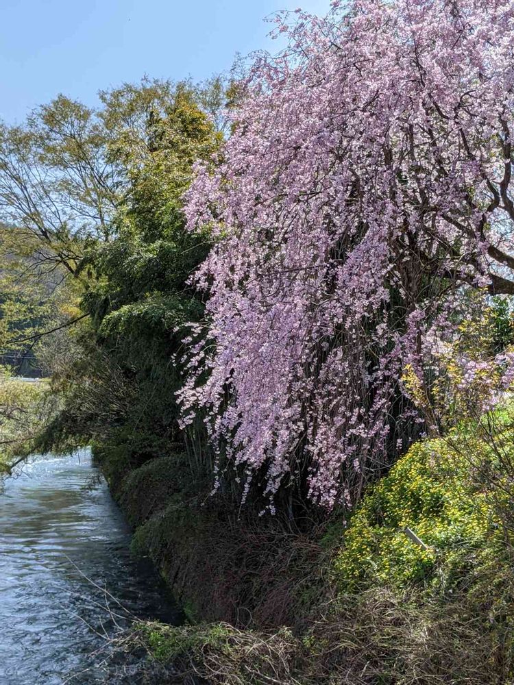 田舎ですが川沿いにこんなに綺麗な枝垂れ桜と出会えました👍👍