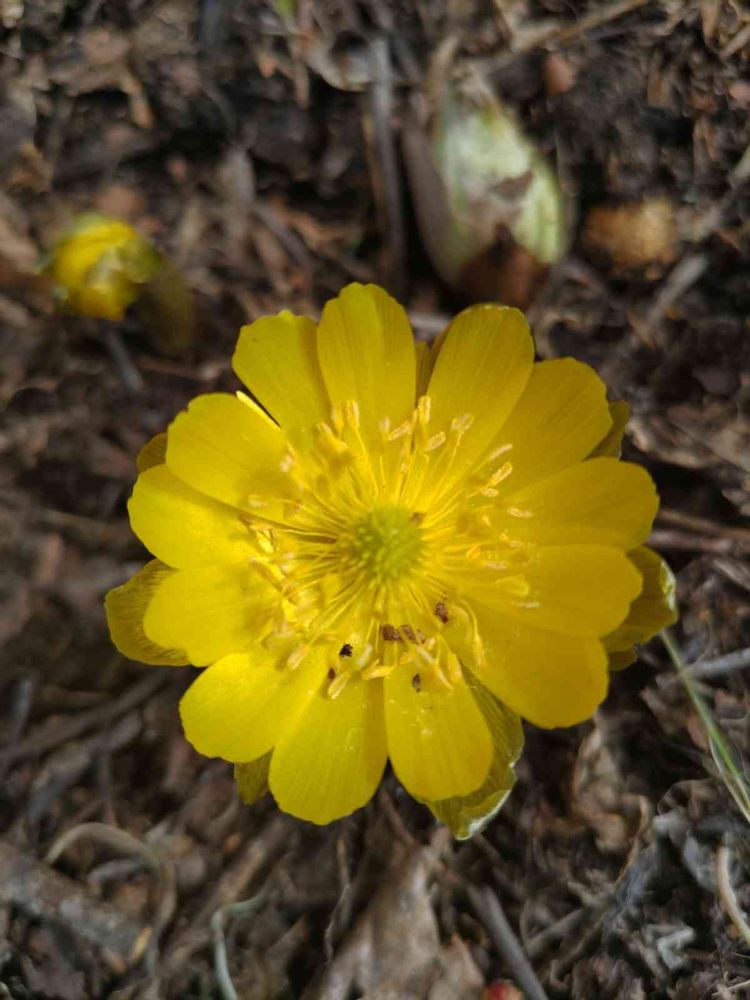 1週間ほど前からやっと開花し始めた我が家の福寿草🌸🌿