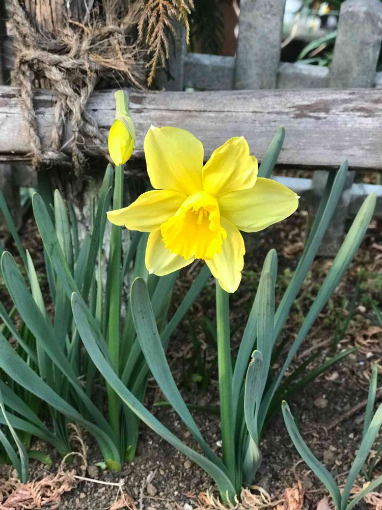 お庭の外に顔を出してるラッパスイセン🎺😄