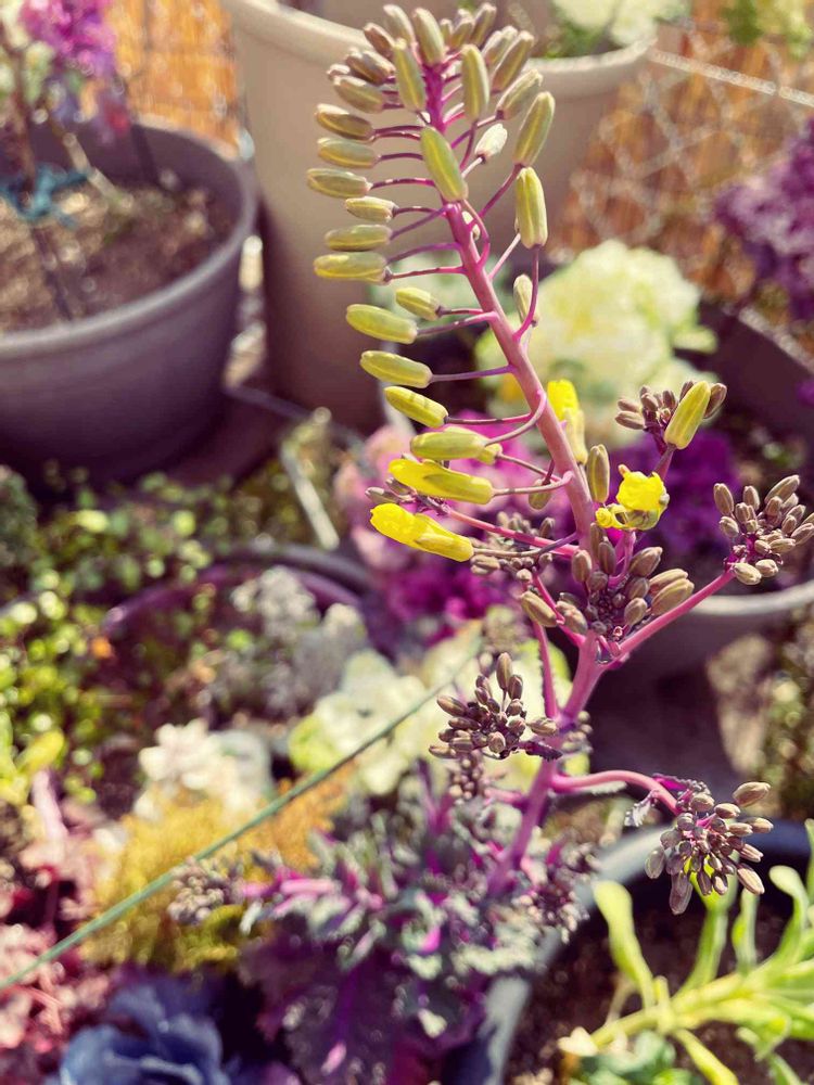 2022ー3ー11(金)晴れ☀️ 寄せ植えの中で🏷タグ無し葉ボタンの蕾が咲きそうです🙂