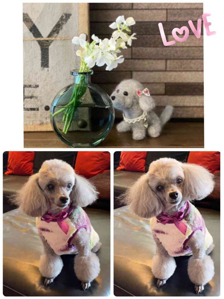 ストックの優しい香りに包まれて、レイラちゃん、とっても可愛いくて、カットもお似合いです~❣️🎶💮💯 ( ´꒳` )੭"💓