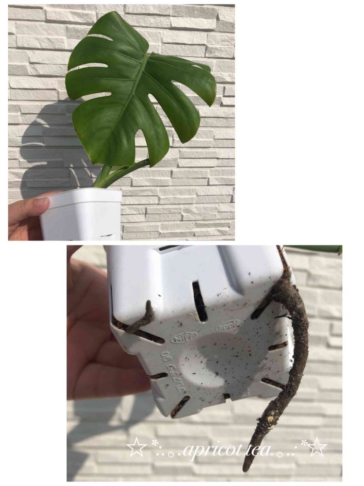 茎伏せから育てたモンステラです!5月になったら植え替えを〜と思っていたモンステラでしたが、鉢底から根っこがニョキニョキニョキニョキ🤣🤣🤣