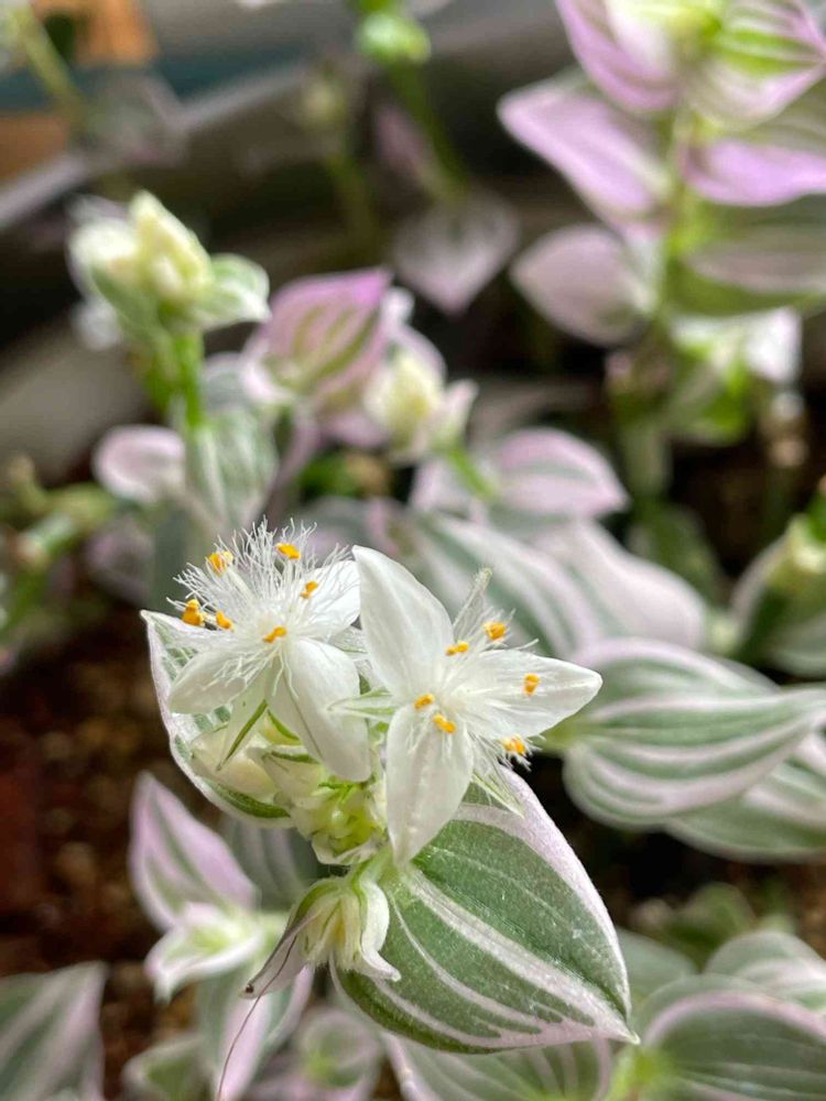 室内に置いて置いたらお花が咲きました❣️可愛い💕ツユクサ科なので白い露草のようなお花💓可愛いです💕