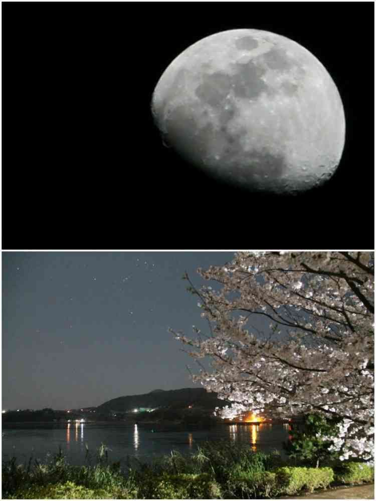 娘に桜と月のコラボだよと言われたけどスマホじゃ撮れないよ〜〜😆