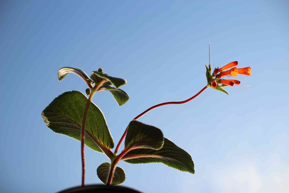そうそう、青空に映える赤の茎❣️花がついて重くなって下向きになったのに、ここ最近太陽めがけて上を向いたの😉