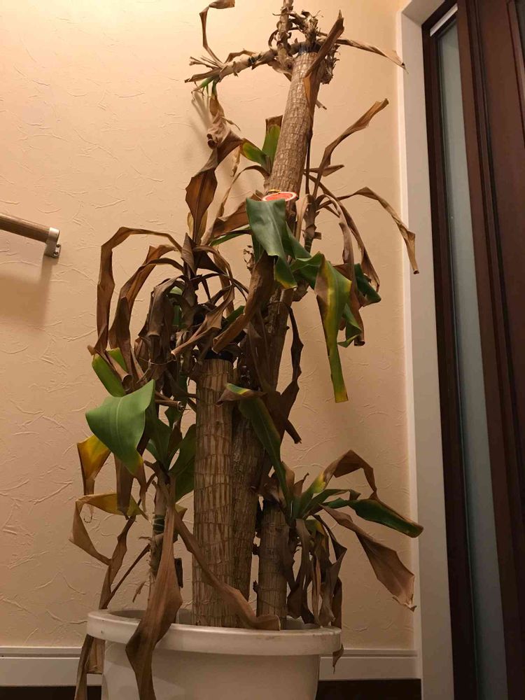 主人の職場にある幸福の木が葉が茶色くなり、捨てようと思うと家に持って帰ってきました。
