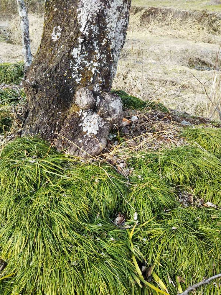 サクラの古木の根元に、乳飲み子のようなコブがあり、一瞬ギョッとしました。