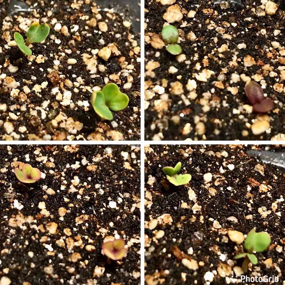 ちょうど1か月前、2月11日に播種した育苗中の春野菜4種、日最高気温15℃を超えるようになったここ数日でようやく発芽🌱。