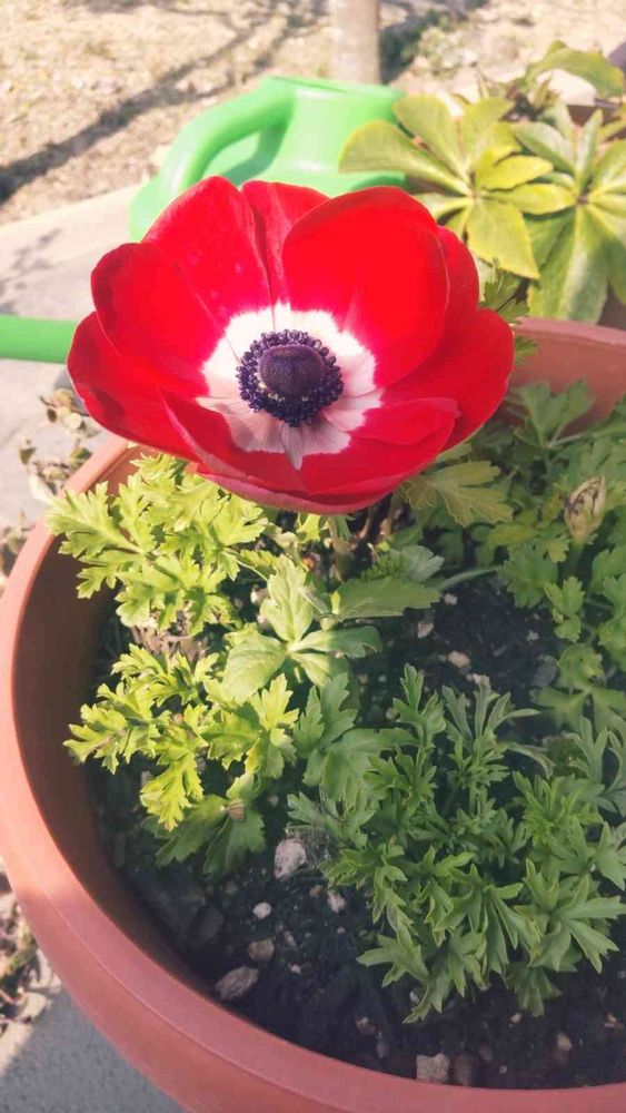 去年から始めた、花作り。初めて植えたアネモネの球根の1番花がようやく開きました。