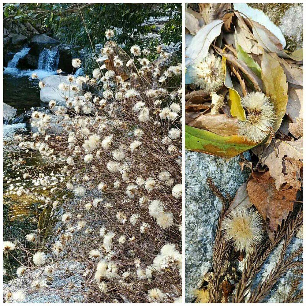 渓谷の遊歩道脇で、綿毛をたくさんつけたコウヤボウキが群生していました。