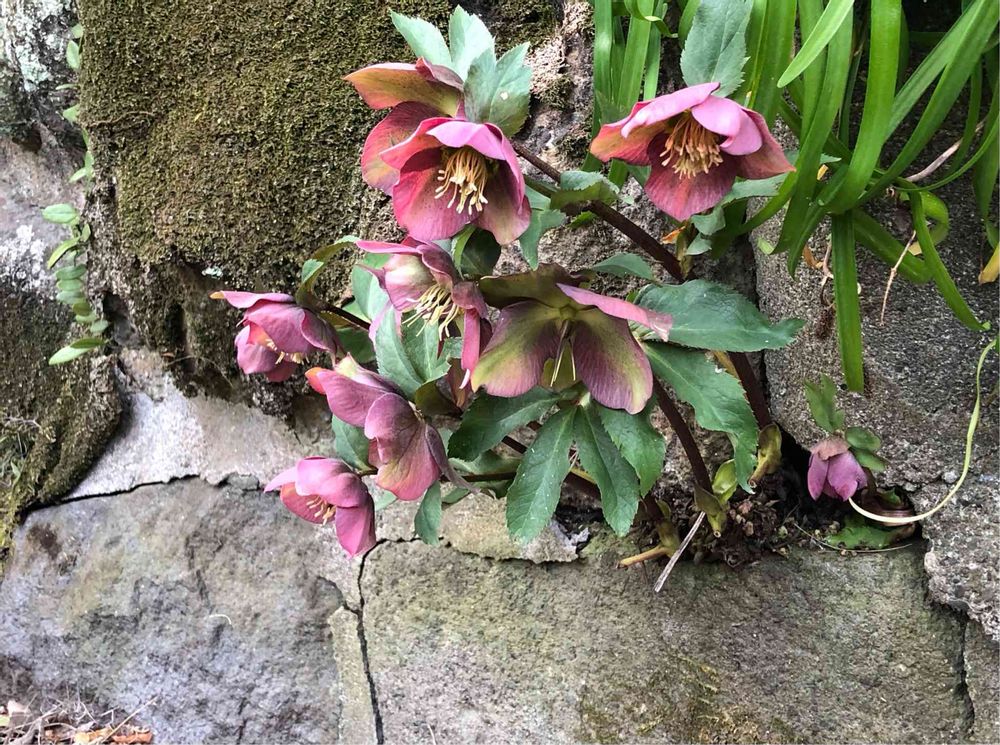 石垣の間に種がこぼれて育ってしまったクリスマスローズです😱。