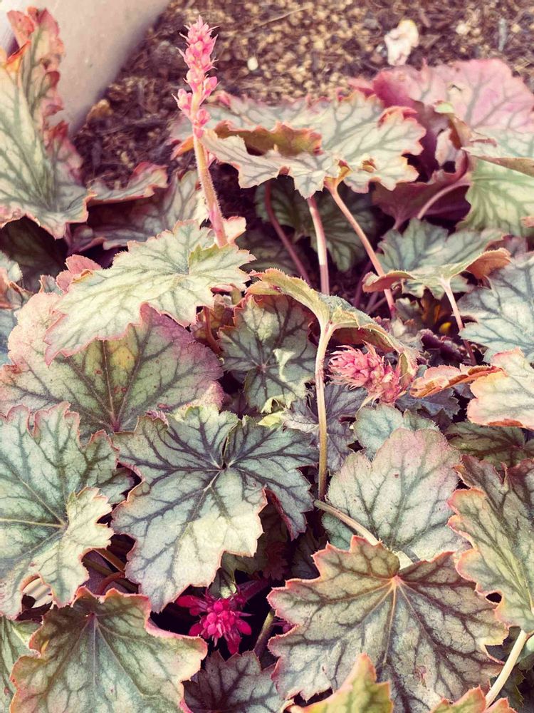 令和4年3月12日(土)晴れ☀️ おはよー^_^ございます 朝の気温が上がって夕方からビニールを被らずに過ごしたヒューケラ🤭😳🤗花芽が上がっていました💕